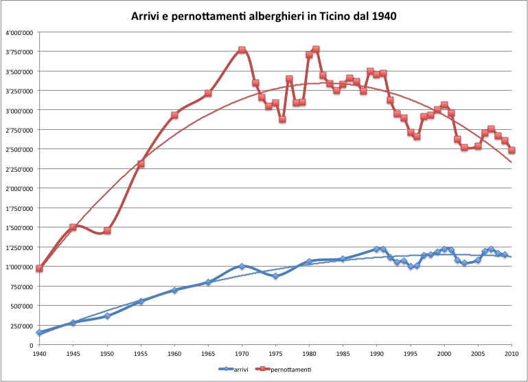 Queste pagine raccolgono diagrammi che esprimono in forma grafica alcuni dati rilevanti sul turismo in Ticino (e, in misura minore, in Svizzera), e qualche contributo giornalistico sul tema del turismo: vai all’indice