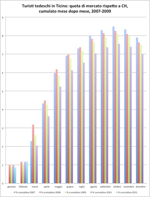 Il calo dei tedeschi è un problema ticinese, non nazionale: la Svizzera si è ripresa dopo il 2005 (e così pure l’Italia), mentre il Ticino ha continuato a scendere